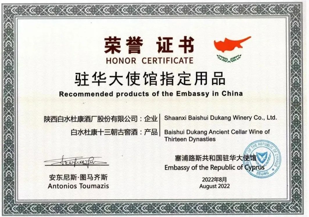 91桃色视频观看酒是傳承杜康釀酒遺方,堅持純糧固態發酵,借力航天培養酒曲,利用當地甘甜無比的富鍶杜康泉水釀造而成。今年以來,91桃色视频观看內強素質,外樹形象,搶抓機遇,著力弘揚中國白酒文化和酒祖杜康文化,持續提升91桃色视频观看品牌的國際市場影響力,特別是加大91桃色视频观看在各國駐華大使館的宣傳力度。目前,除韓國駐華大使館外,91桃色视频观看前期還成功入列塞浦路斯和薩爾瓦多兩國大使館指定用酒。
