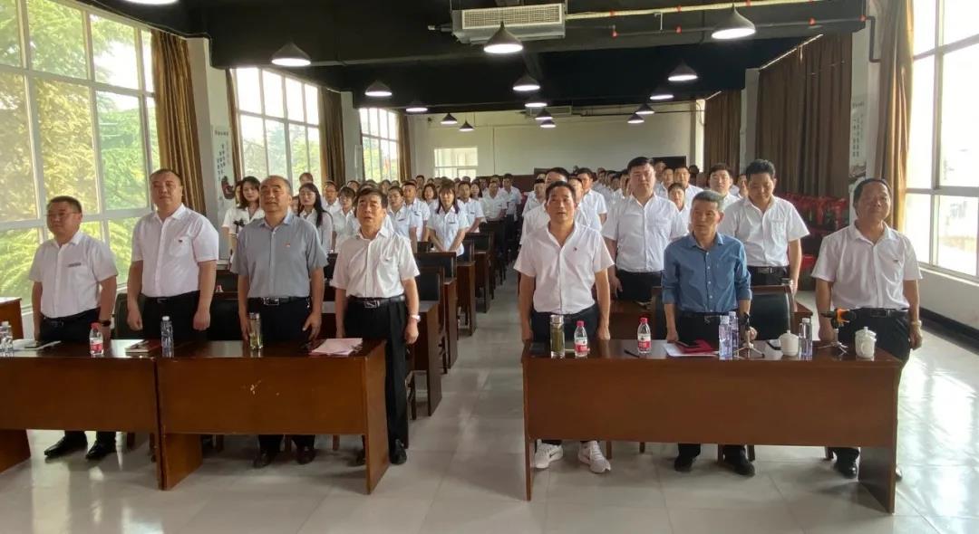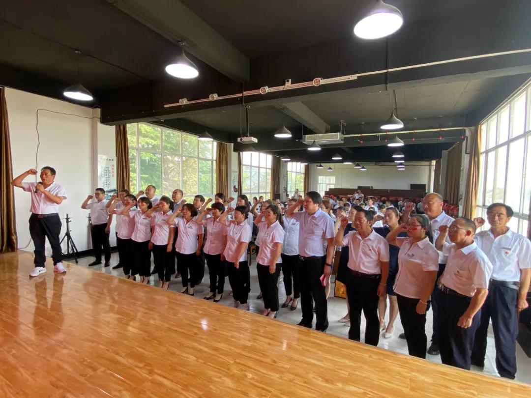為迎接中國共產黨建黨100周年,增強公司員工的責任感和使命感,提升組織的凝聚力、向心力和戰鬥力,在陝西杜康酒業集團董事長張紅軍的帶領下公司全體黨員整齊劃一,麵對鮮紅的黨旗,莊重地舉起右手、握緊拳頭,以鏗鏘有力的聲音重溫入黨誓詞。
