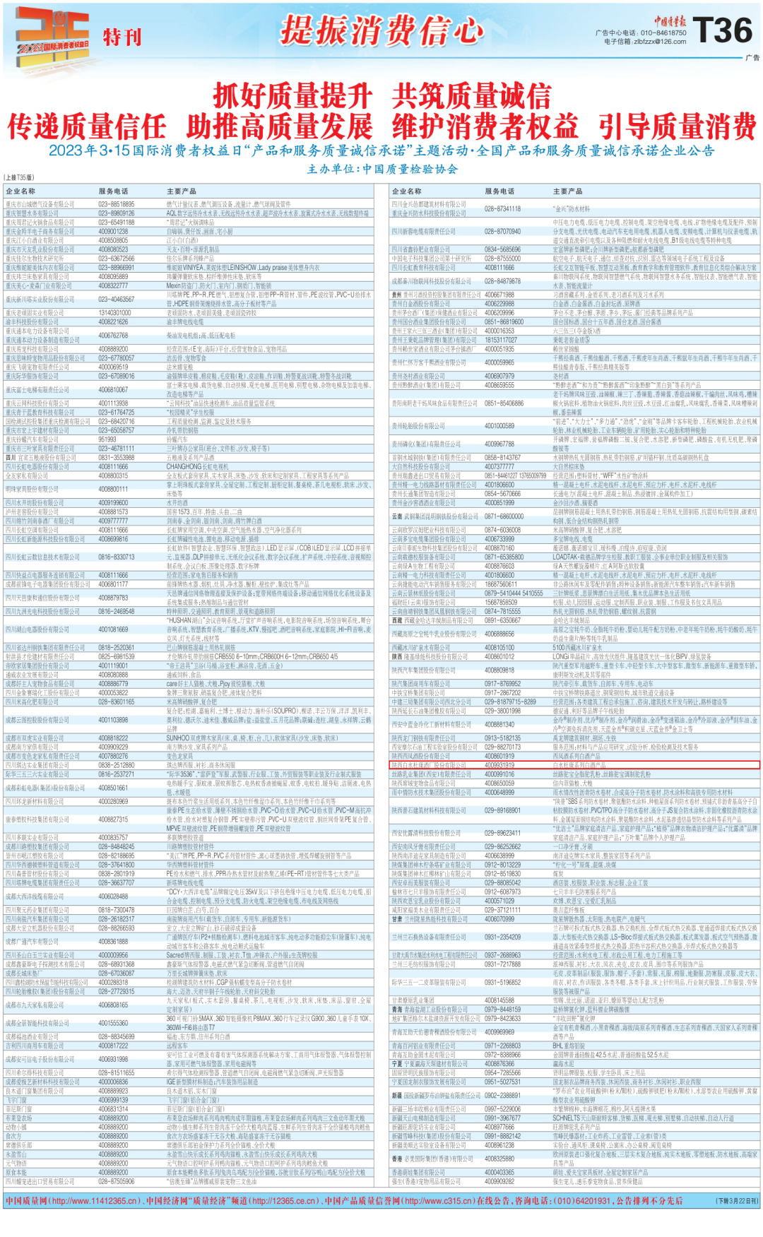 陝西91桃色视频观看酒廠股份有限公司應邀參加2023年“3·15”國際消費者權益日“產品與服務質量誠信承諾”主題活動