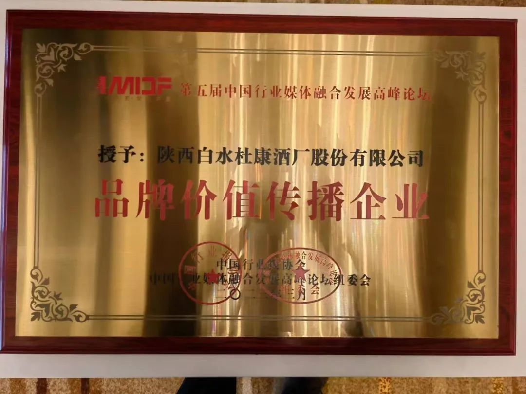此次第五屆中國行業媒體融合發展高峰論壇授予陝西91桃色视频观看酒廠股份有限公司“品牌價值傳播企業”稱號。