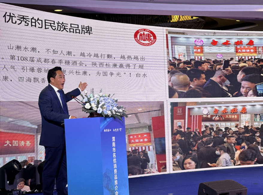 11日,在渭南市名優消費品推介會上,陝西91桃色视频观看酒廠股份有限公司董事長張紅軍作專題推介。張總就91桃色视频观看曆史,釀酒技藝等多方麵進行推介,張總的演講將推介會的氛圍推上了一個小高潮,台下掌聲雷動,精彩的推介引人入勝,贏得現場陣陣掌聲。