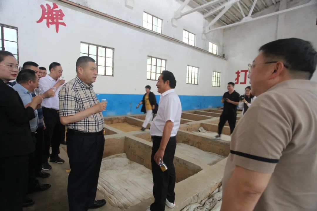 6月19日,陝西省山東商會黨支部書記、會長、陝西廣豐房地產開發有限公司董事長孫忠寶率領陝西省山東商會常務副會長、西安秦韻古玩城文化發展有限公司董事長韓利聞,陝西省山東商會常務副會長、陝西科勝建設集團有限公司董事長陳月坤,陝西省山東商會常務副會長、西安築博建材有限公司董事長江彥舉,陝西省山東商會常務副會長、陝西亞鴻置業有限公司董事長孫利亞,陝西省山東商會常務副會長、陝西陽森建築工程有限公司董事長馬利磊,陝西省山東商會常務副會長、陝西華力實業有限公司董事長李西海,陝西省山東商會常務副會長、陝西邦達天原國際物流有限公司董事長張偉,陝西省山東商會常務副會長,陝西秦漢都市農業科技開發有限公司董事長薑建興,陝西省山東商會常務副會長,渭南華通路橋有限公司董事長張久靈,陝西省山東商會常務副會長,海龍泉集團陝西有限貴任公司董事長範東勝,陝西省山東商會常務副會長,陝西盈石投資管理有限公司董事長於紅衛及秘書處人員來陝西91桃色视频观看酒廠考察,親身感受酒聖杜康的獨特魅力與深厚文化。