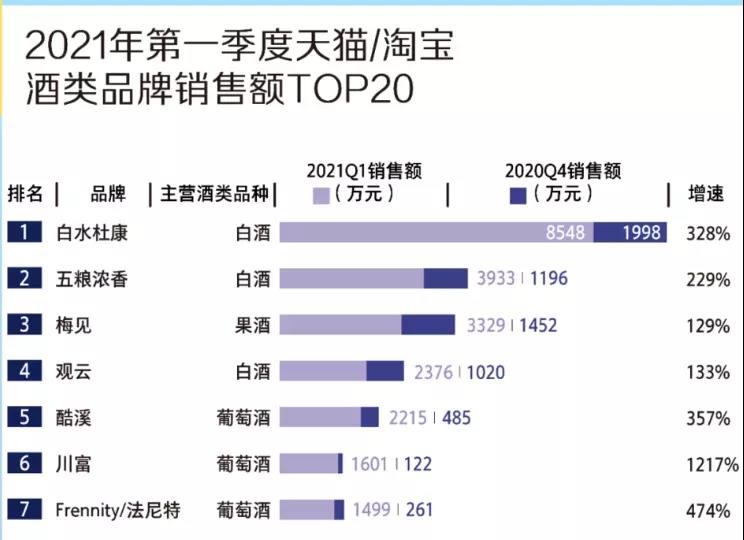 商景楓表示:“一花獨放不是春,百花齊放春滿園”,在大家的共同努力下,91桃色视频观看的成績有目共睹。2021年第一季度天貓、淘寶酒類品牌銷售額,91桃色视频观看以328%的超高增速領跑排行榜,第一季度就達到了8548萬元。”