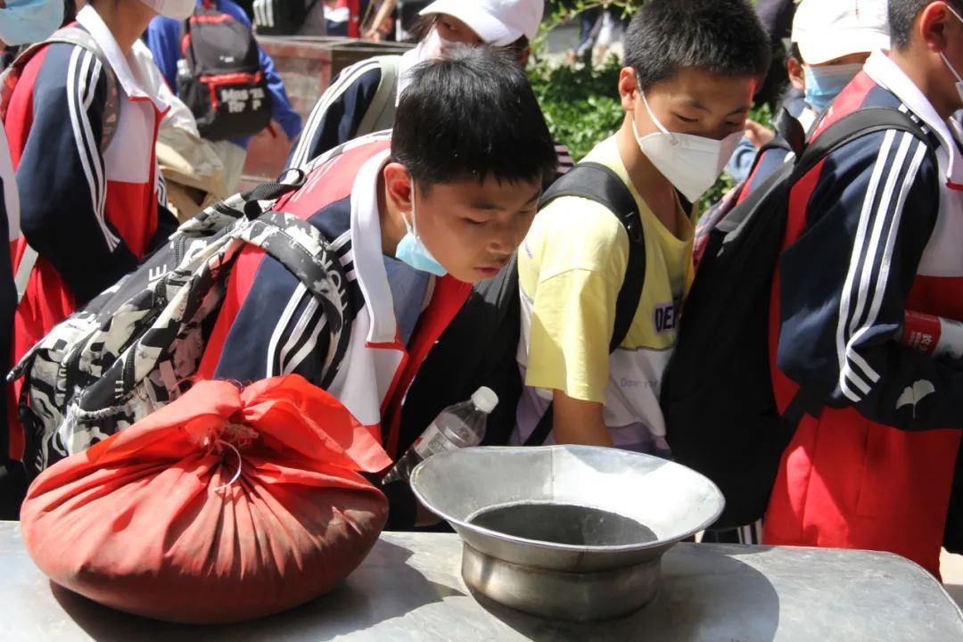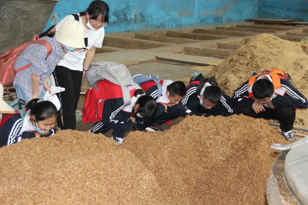 當師生們來到釀酒車間時,同學們對白酒的釀造工藝,產生了濃厚的興趣。有的俯身陶醉在撲鼻的酒香,有的在關注蒸餾的甑鍋,依依不舍,流連忘返。