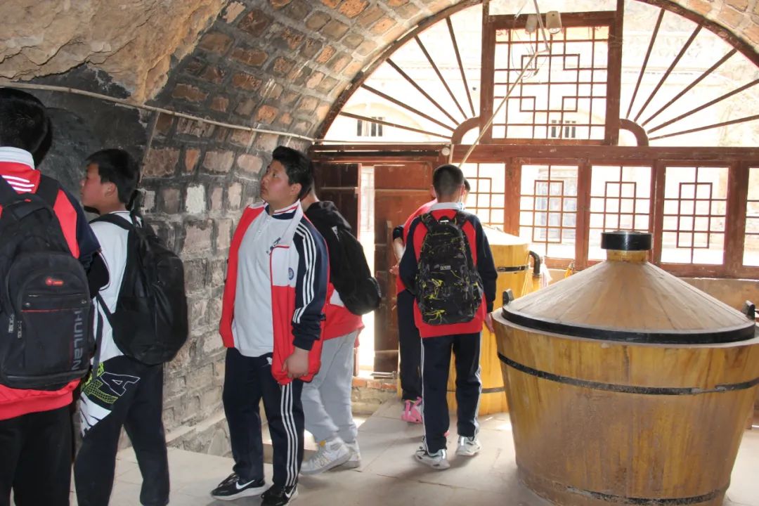 當師生們來到國槐酒庫時,一下子被一眼望不到頭的碩大酒海震撼了,當聽到酒廠講解員說,酒海是用國槐木和油麻紙做的,滲水不滲酒時,感歎故人的智慧。