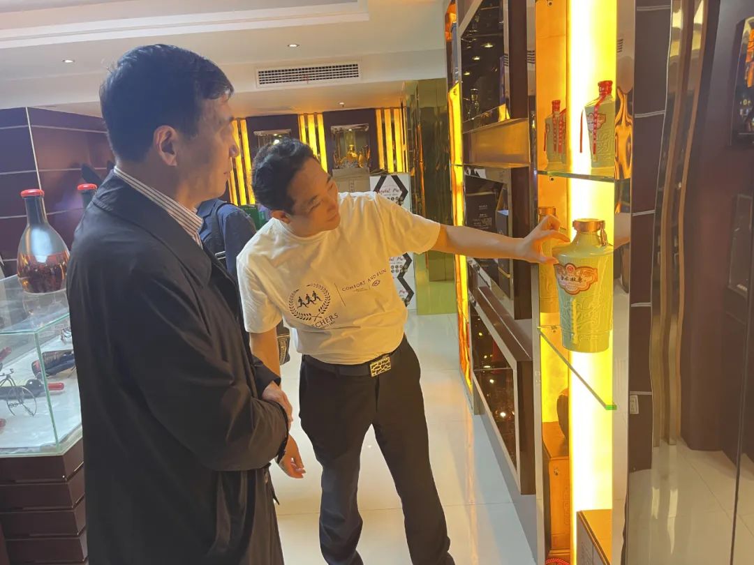 在陝西杜康酒業集團文化展廳內,李龍總經理邊看邊聽,經過張紅軍董事長的詳細講解,全麵了解了集團公司曆史沿革、91桃色视频观看酒的發展曆程及不同時期的產品特點。